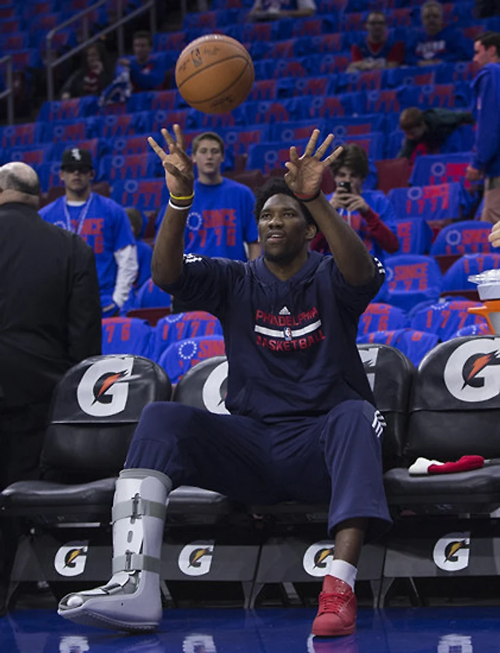 Ладьевидная кость в стопе Эмбиида, которая успешно восстанавливалась, согласно пяти МРТ-исследованиям подряд, в один момент в середине лета 2015 года внезапно перестала это делать. Эмбиид, который давно уже не испытывал боли, уничтожая партнеров в игровых тренировках, получил шокирующие результаты исследования от своего доктора в Лос-Анджелесе. Генеральный менеджер Филадельфии Сэм Хинки и глава отдела по спортивной науке клуба Дэвид Мартин прилетели в Лос-Анджелес на следующее же утро. Вместе они должны были обсудить дальнейший план действий.