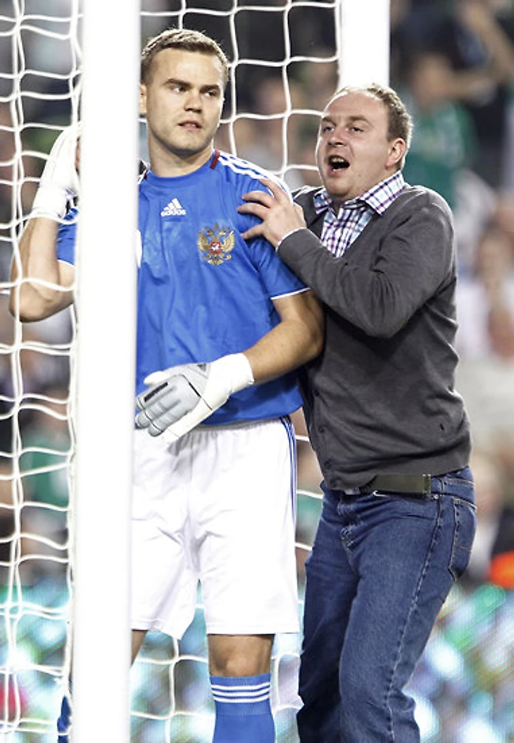 Если даже у праздного зрителя может сложиться впечатление, что мир вращается вокруг Акинфеева, то что же говорить о самом Игоре – он абсолютно в этом уверен. Подавляющее большинство людей признает это ощущение вращающегося вокруг тебя мира сладостным. Их лица расплываются в глуповатой, как будто пьяной улыбке, в членах разливается блаженная слабость - но не таков наш Игорь. Это с виду дружелюбное мельтешение картин сладкой жизни вокруг звезды футбола только мобилизует Акинфеева. Делает его бдительным. Бдительность - прежде всего. Потому что если ты делаешь свое дело лучше всех на свете - ну или хотя бы на пространстве одной седьмой части суши, - то все тебе завидуют и желают зла.