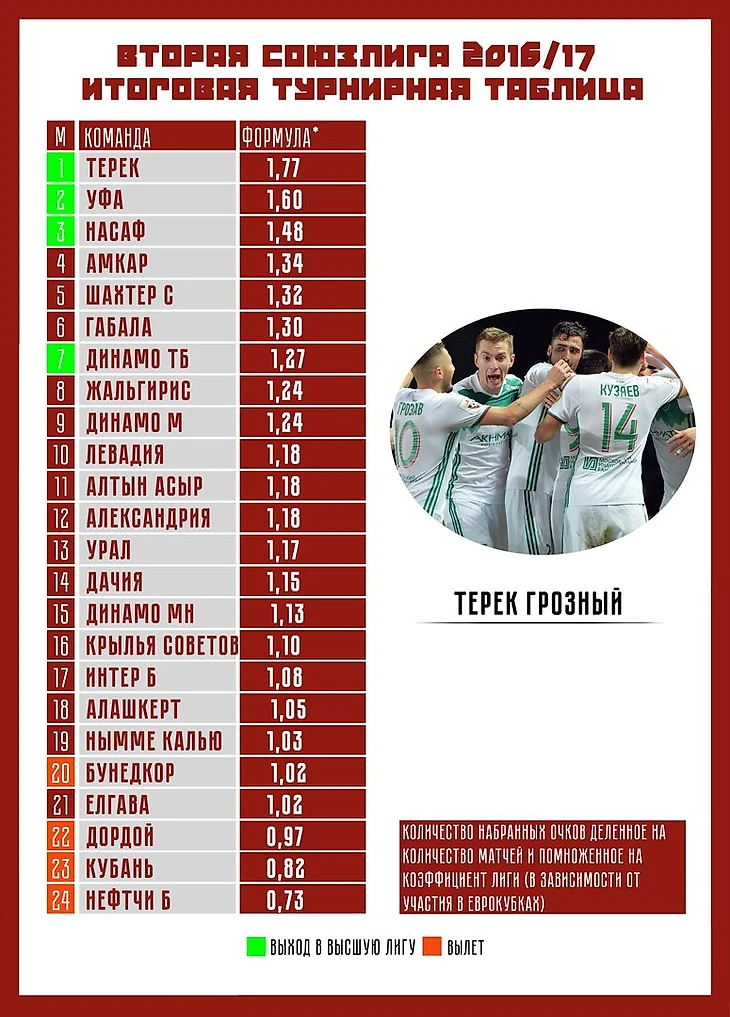 «Терек» стал чемпионом Второй Союзлиги, «Уфа» — вторая, «Насаф» немного сдал в концовке сезона, но его конкурентов лихорадило не меньше, поэтому третья путевку все же досталась «драконам».