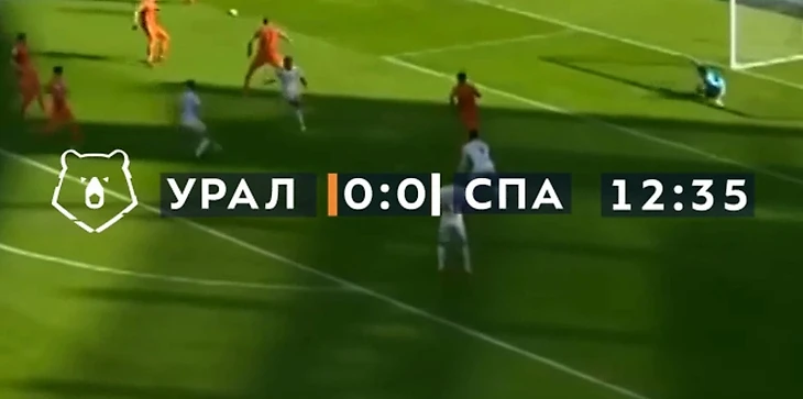 При просмотре матча «Урал» — «Анжи» меня долго не покидало ощущение, что что-то в графике не так: вроде всё на месте, но нечто откровенно раздражает. Раздражало как раз то, что графика сильно бросается в глаза. «Так плашки, вроде, должны быть полупрозрачными, нет?» — полез я сайт Студии проверять. И действительно: лебедевские дизайнеры с целью уменьшить визуальный шум свели количество непрозрачных плашек к минимуму. Как раз постоянный титр в левом верхнем углу должен был быть с полупрозрачными плашками.