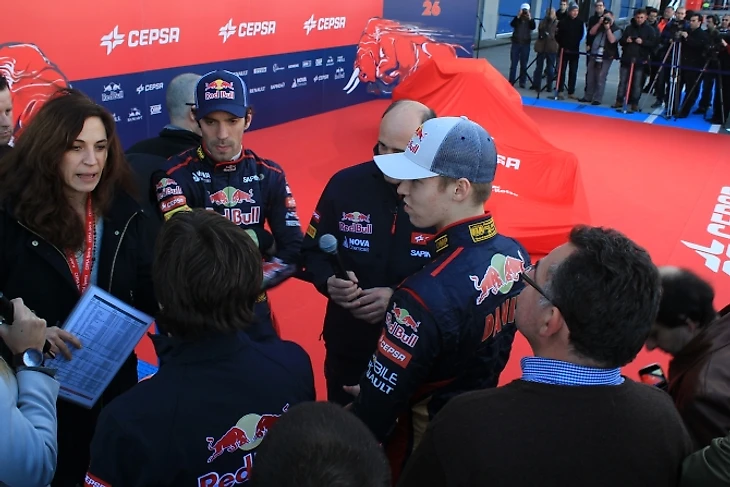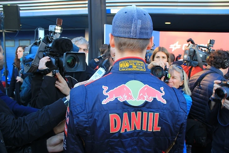 Впрочем, главная цель людей с камерами в руках находится с другой стороны, на питлейне, где «Торо Россо» презентует свой новый болид. За четверть часа до начала церемонии у боксов скудерии не протолкнуться. Посмотреть презентацию приходят люди из «Феррари» и других команд. Здесь же – Даниил Квят и его партнер по команде Жан-Эрик Вернь, но все внимание окружающих сосредоточено на болиде, накрытом дразнящей красной материей.