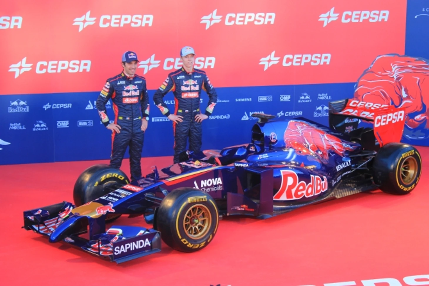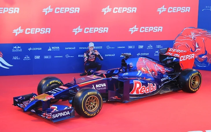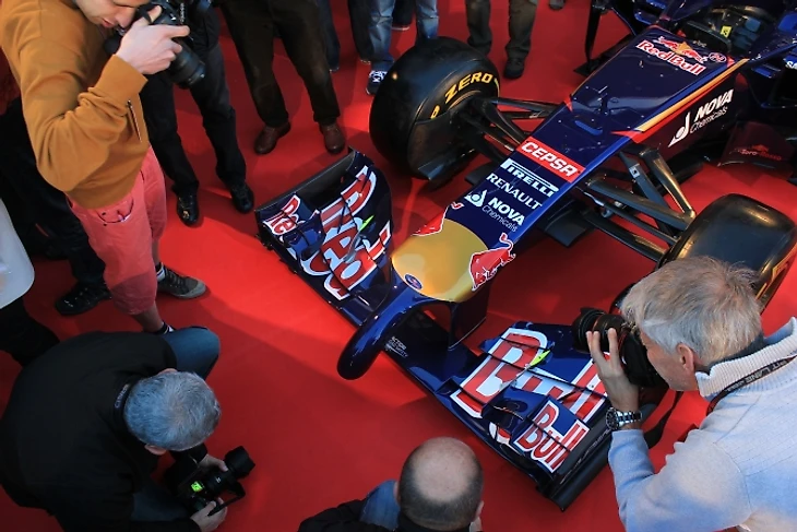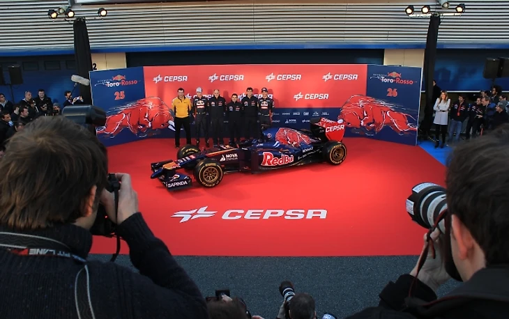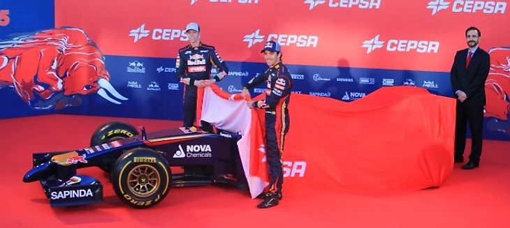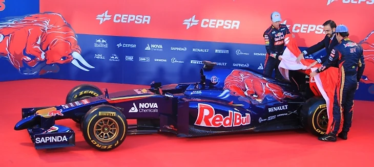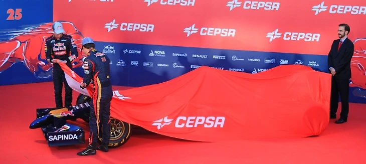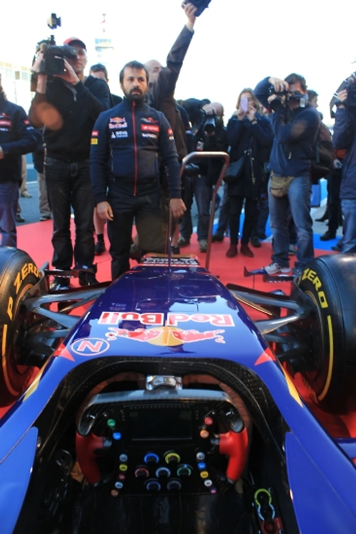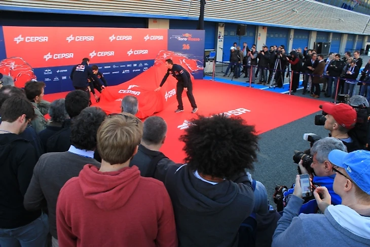 Руководитель «Торо Россо» Франц Тост произносит приветственную речь, благодарит партнеров команды и приглашает на сцену пилотов, чтобы приступить к самому главному. В следующее мгновение ткань сползает с болида. От щелчков затворов фотоаппаратов закладывает уши, процессом съемки руководит забравшийся на стремянку британец.