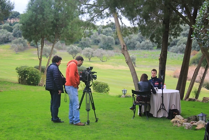 Порывистый ветер заставляет вздрагивать флажки над лунками для гольфа. Моросящий дождь застает врасплох разгуливающих по саду черных гусей – птицы неуклюже перемещаются ближе к деревьям. Под одним из деревьев – стол, два кресла и двое мужчин, занятых последними приготовлениями к съемкам. Через полчаса в одном из кресел будет сидеть Даниил Квят – российский пилот скудерии «Торо Россо». После утреннего фитнеса 19-летнему гонщику предстоит ответить на десятки вопросов о том, что теперь занимает всю его жизнь.