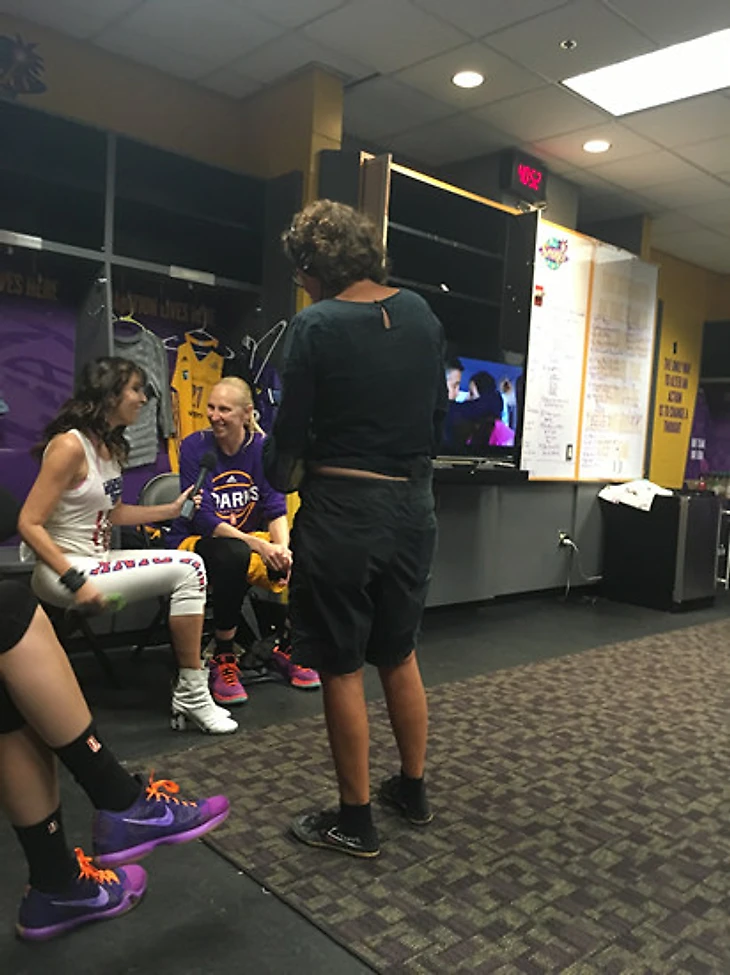 Вроде баскетбольные правила я рассказала. Вот еще парочка околобаскетбольных. После каждой игры в раздевалке после собрания с тренером проходит общение с журналистами. То есть 30-40 минут после матча команда сидит на своих местах и ждет СМИ, которые вольны свободно в это время заходить к нам и задавать спортсменам вопросы. Причем, в это же время назначенные игроки раздают автографы всем желающим, а затем кто-то из нас, как правило по очереди, идет общаться с болельщиками, отвечать на их вопросы. Пропуск любого из этих мероприятий тоже карается штрафами. Но лично мне пропускать их и так не хочется: болельщики и журналисты очень добродушные и общаться с ними одно удовольствие. Честно говоря, надо бы и нам эту практику позаимствовать))