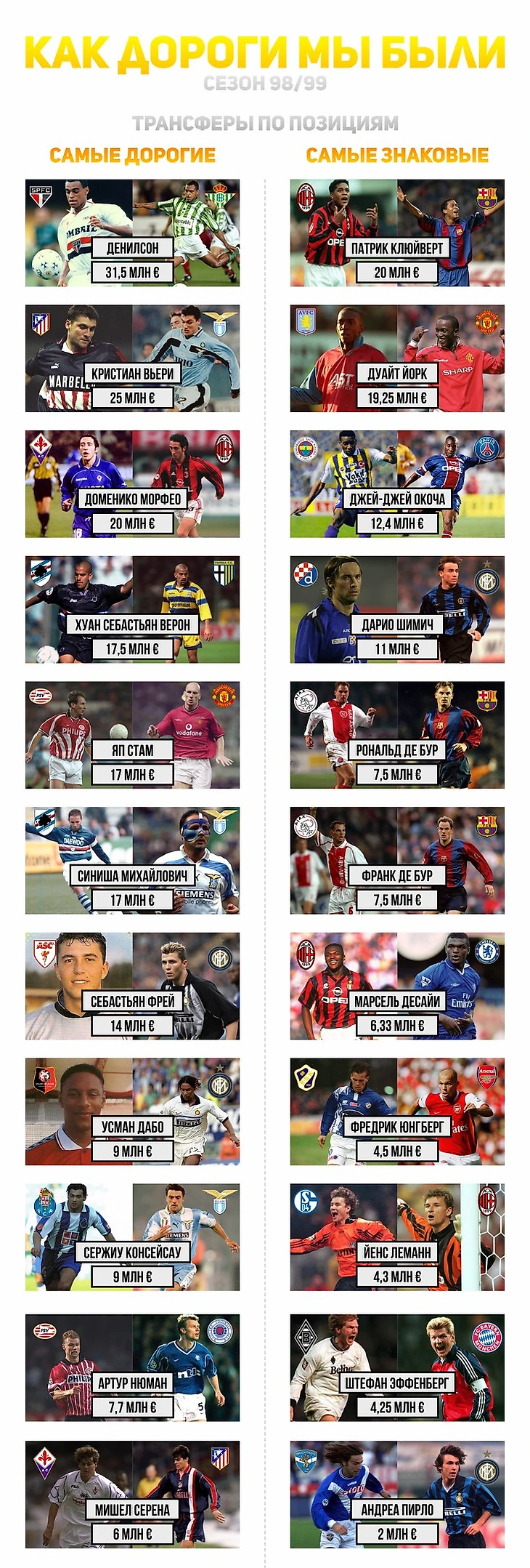 Блог Визуальное чтиво продолжает рубрику «11 самых» дорогих и самых знаковых трансферов* на этот раз сезона 98/99.