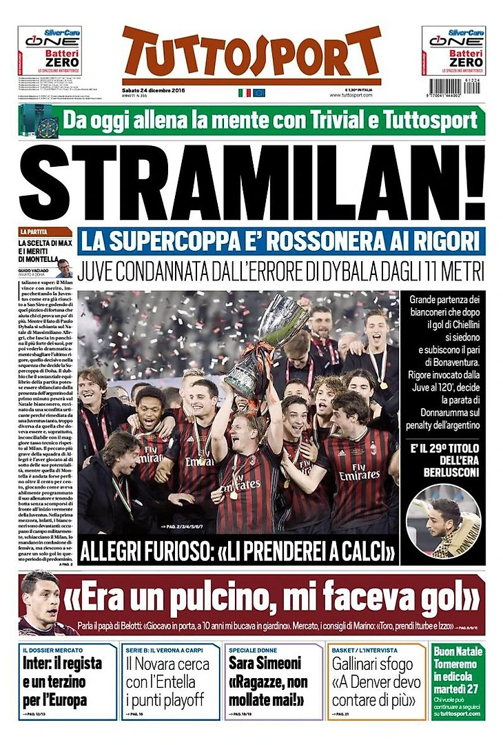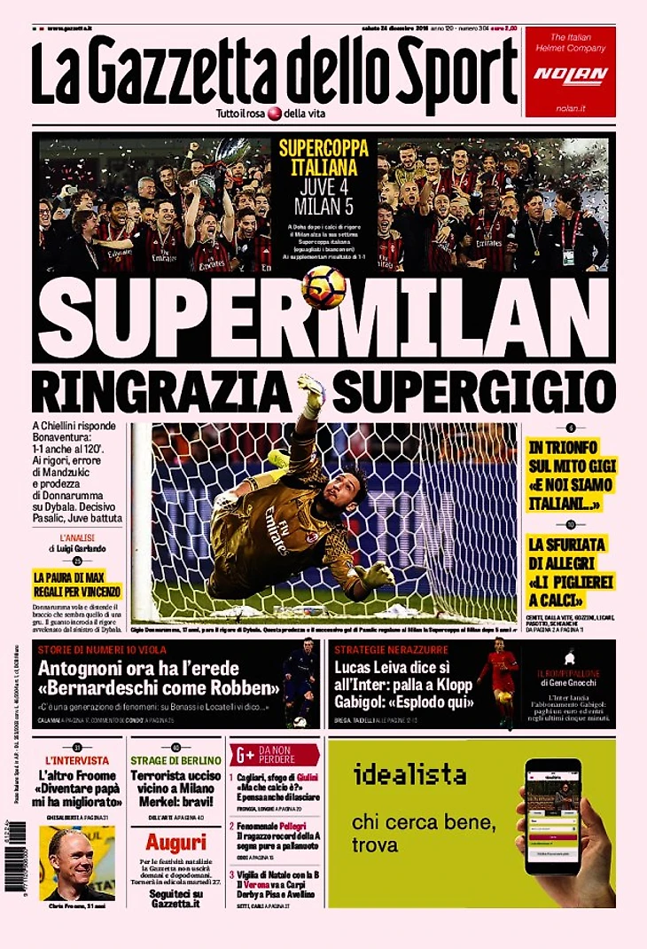 «Супер «Милан» благодаря СуперДжиджо». Заголовки Gazzetta, TuttoSport и Corriere за 24 декабря