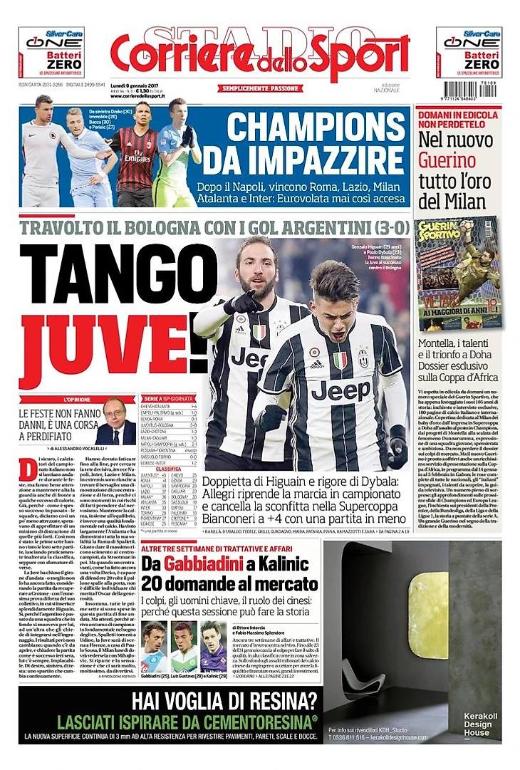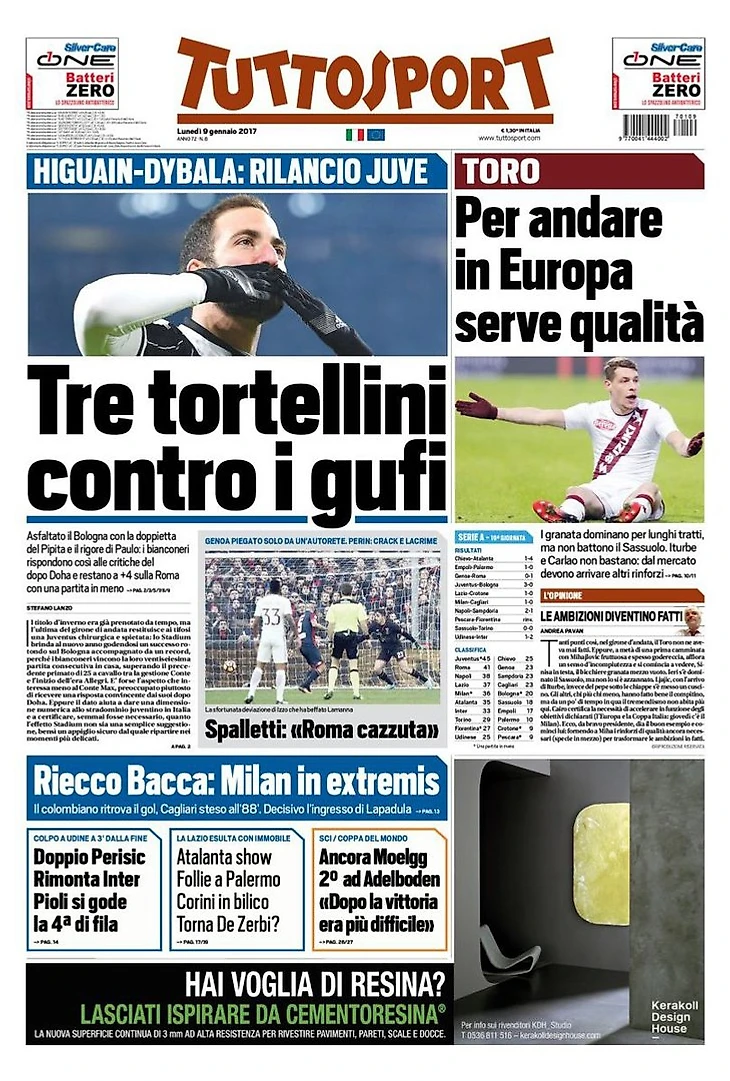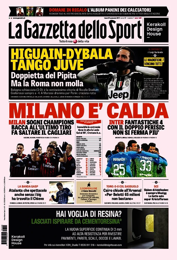 «В Милане жарко». Заголовки Gazzetta, TuttoSport и Corriere за 9 января