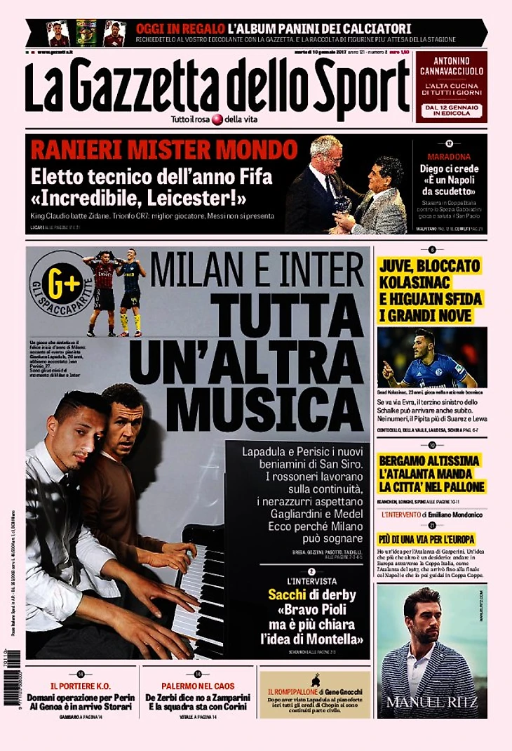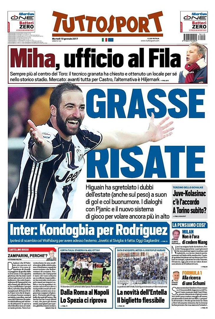 «Безудержный смех». Заголовки Gazzetta, TuttoSport и Corriere за 10 января