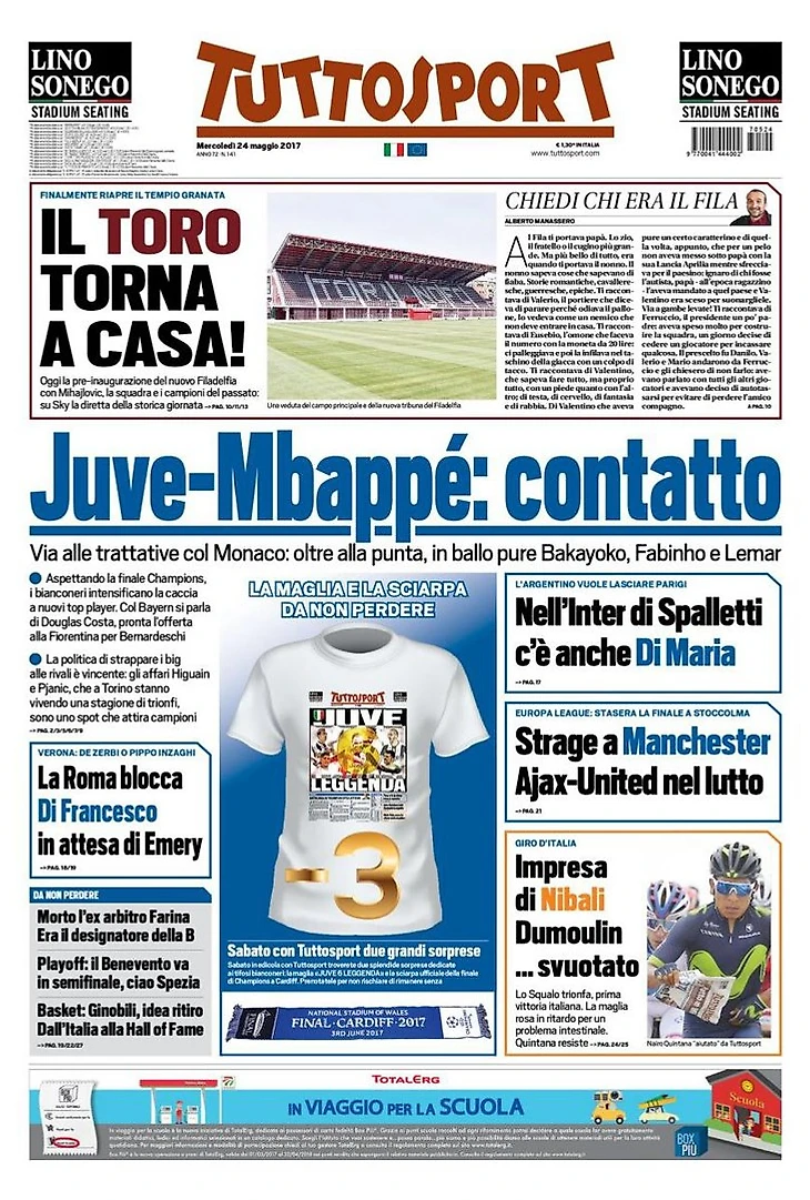 «Люди для «Юве». Заголовки Gazzetta, TuttoSport и Corriere за 24 мая