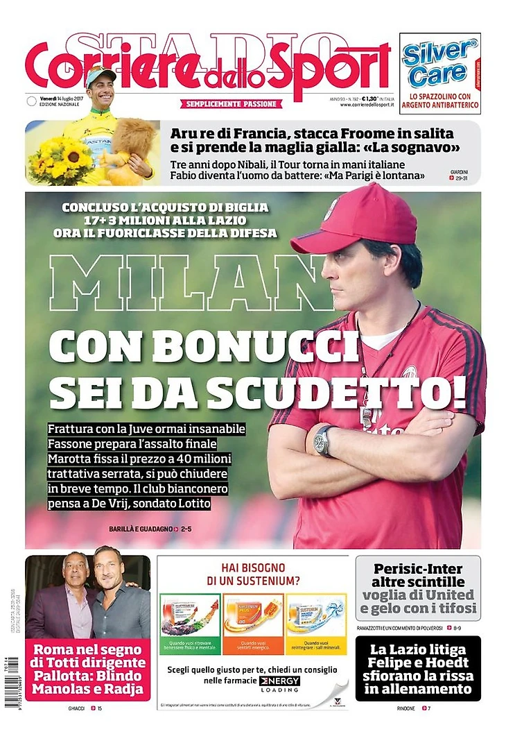 Завершена покупка Биглии, 17+3 миллионов для «Лацио». Теперь звезда в оборону. Разрыв с «Юве» почти неизлечимый. Фассоне готовит финальный штурм. Маротта устанавливает цену в 40 миллионов, переговоры идут, всё может быть завершено в скором времени. Черно-белый клуб думает о Де Врее, запрос по нему у Лотито.