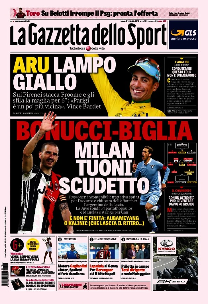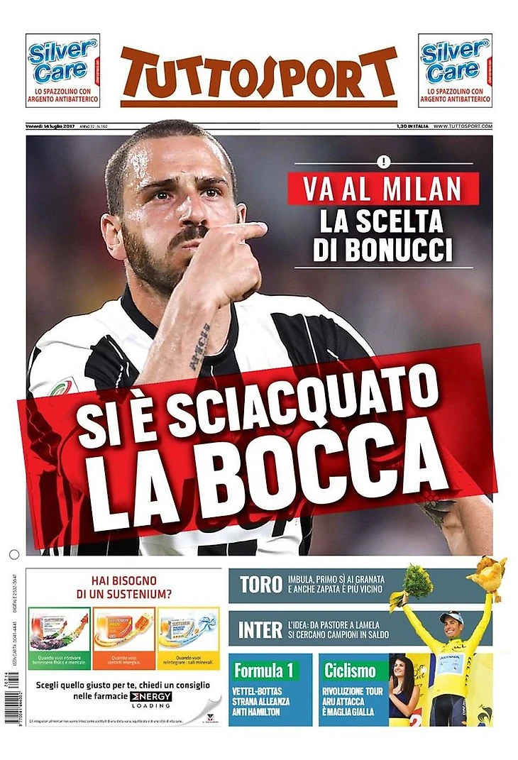 «Милан», с Бонуччи ты достоин Скудетто! Заголовки Gazzetta, TuttoSport и Corriere за 14 июля