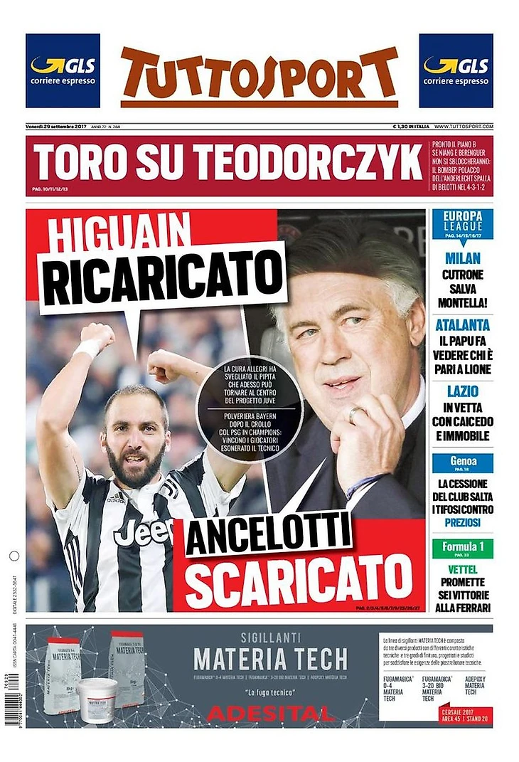 Первое увольнение: тренер никогда не был уволен по ходу сезона. «Бавария» увольняет Анчелотти, Россонери в прессинге. Руменниге: «Выступление не было на высоте». Мирабелли защищает Монтеллу, но контакты сдвинуты на май.