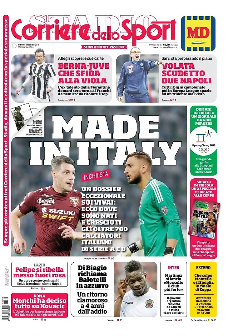 Сделано в Италии. Заголовки Gazzetta, TuttoSport и Corriere за 8 февраля