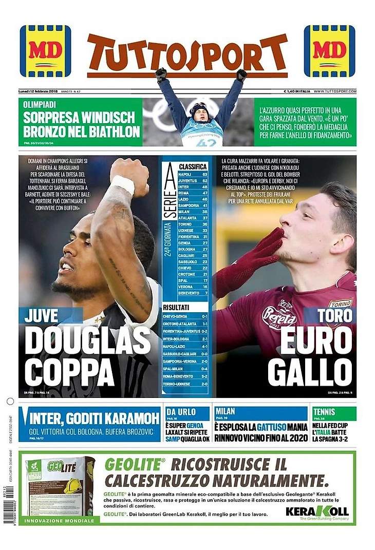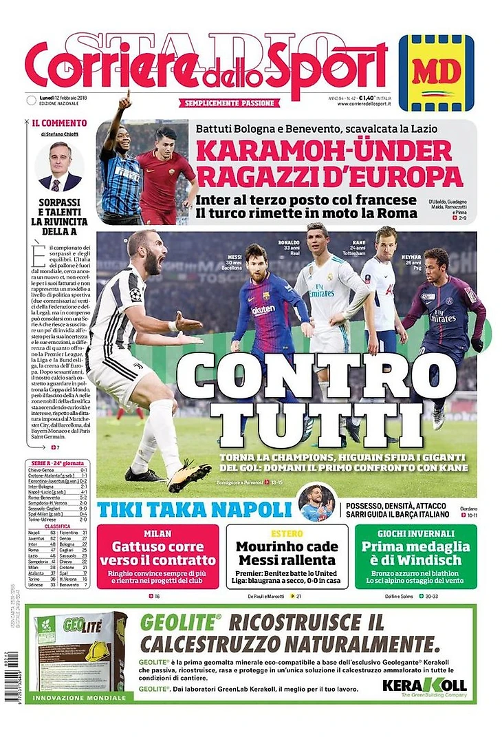 Против всех. Заголовки Gazzetta, TuttoSport и Corriere за 12 февраля