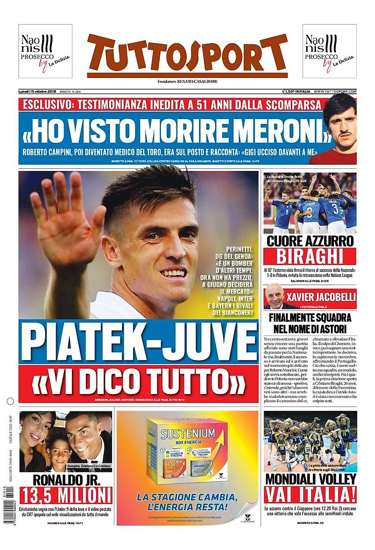Перинетти, спортивный директор «Дженоа»: «Он бомбардир иных времён, сейчас он бесценен, в июне всё решит рынок». «Наполи», «Интер» и «Бавария» – соперники Бьянконери.