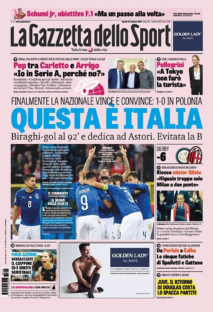 Прекрасная! Заголовки Gazzetta, TuttoSport и Corriere за 15 октября
