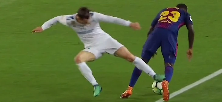Однако, помимо этой левой карточки, судья не показал 1000% красную Бале, который умышленно шипами влетел в Умтити