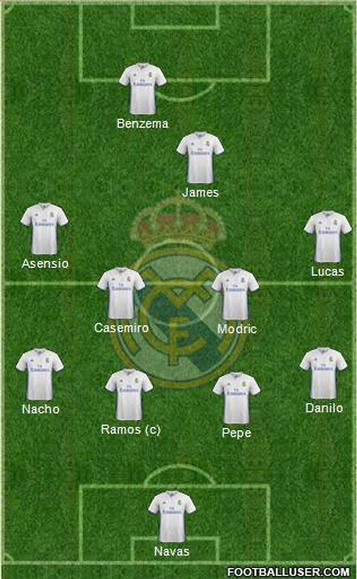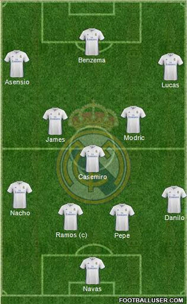 Статистический портал four-four-two.com рисует "Реалу" схему 4-3-3, на мой скромный взгляд, сегодня больше похоже на 4-4-1-1 все-таки, Асенсио не играл чисто на левом фланге атаки, так же как и Васкес частенько возвращался в защиту при необходимости. Поэтому, предлагаю для ознакомления оба варианта тактического построения: