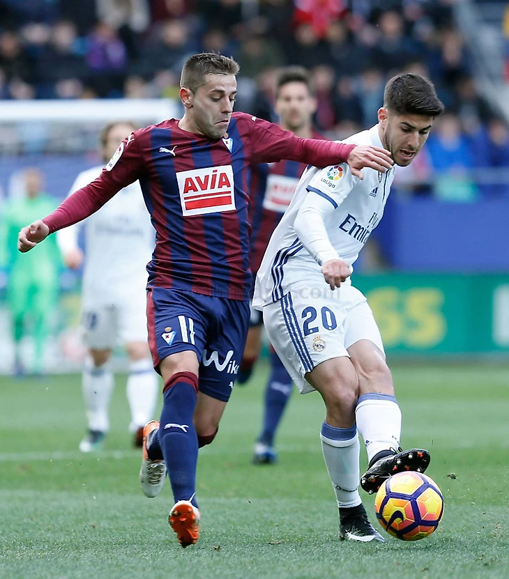 Васкес своершил 4 отбора за игру. Это к слову о сегодняшней позиции игрока. Создал отличный шанс для Асенсио, но удар последнего удачно отразил вратарь "Эйбара". С точки зрения атаки - сегодня не особо получилось. Сложилось такое ощущение, что Хамес настолько удачно заполнял свободные зоны, что Лукас чаще смещался на его позицию для возможной страховки.