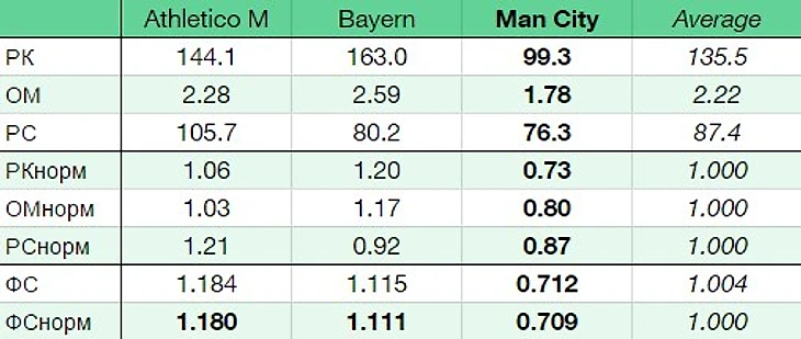 ОМ - среднее количество очков за матч, набираемых командой в чемпионате своей страны.