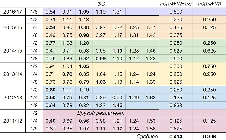 Пример расчета ФС для жеребьевки полуфинала предыдущего сезона