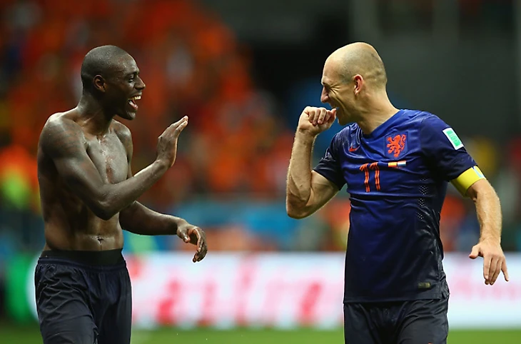 На фоне нынешней сборной Испании голландцы выглядят особенно разудалыми и дикими – и очень привлекательными. Ни один из них не упустил возможности покрасоваться: ван Перси забил феноменальный гол, Снейдер выдал пару роскошных передач, Роббен повозил по газону победителей Лиги чемпионов, Мартинс Инди таращил глаза и выговарил судье за то, что спрей попал ему на бутсу, де Йонг отвесил дежурного леща Бускетсу и даже не получил карточки. Я бы не стал называть эту сборную командой, где один за всех и за все за одного – нет, тут каждый сам за себя, просто порой этот пацанский вернисаж получается особенно эффектным.