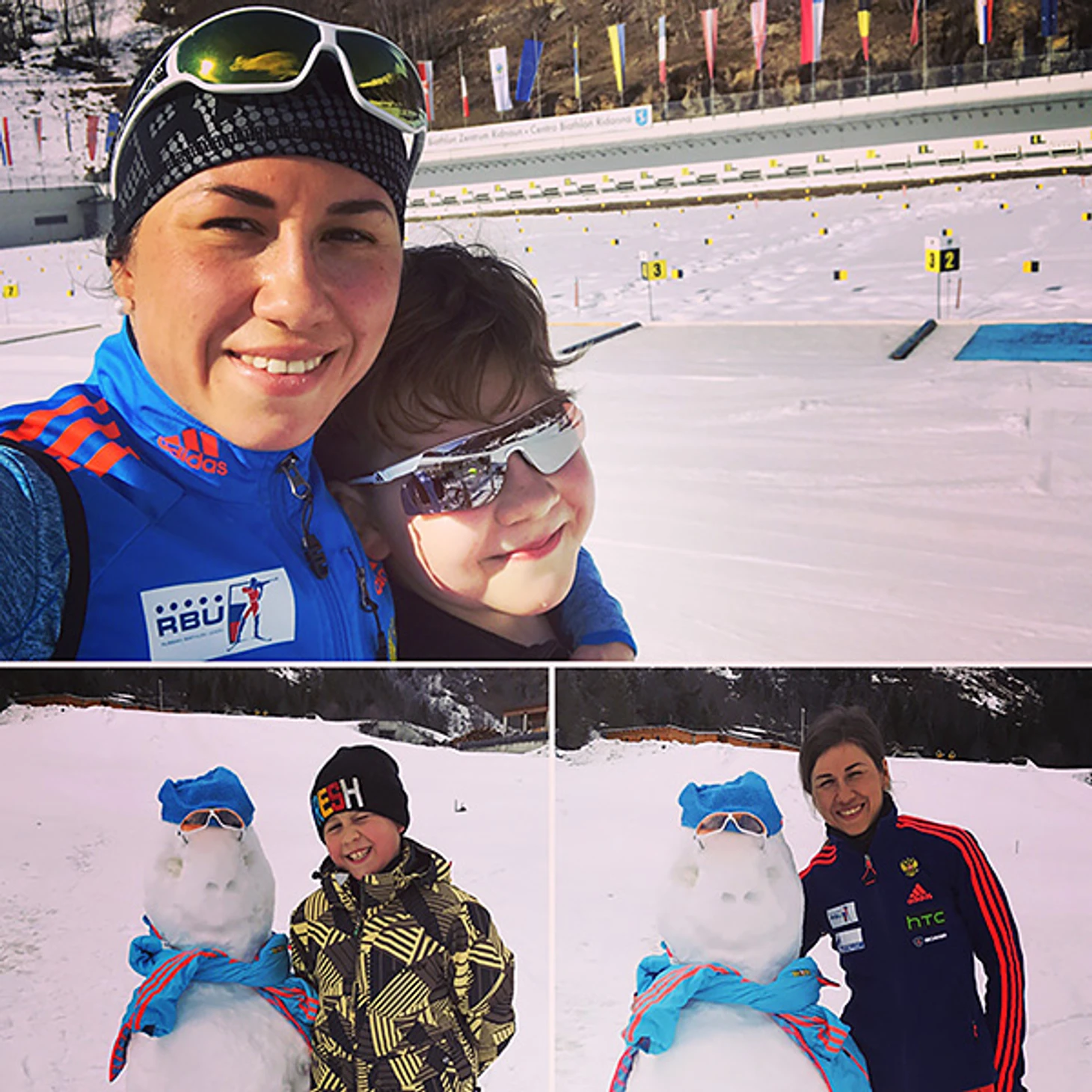 Там продолжила подготовку, без всяких сбоев, только лишь пропила курс лекарств и придерживалась диеты. После того, как команда уехала, было принято решение остаться в Италии и завершить горную подготовку. Как раз в это время у сынишки были школьные каникулы, и он приехал навестить маму, это очень здорово.