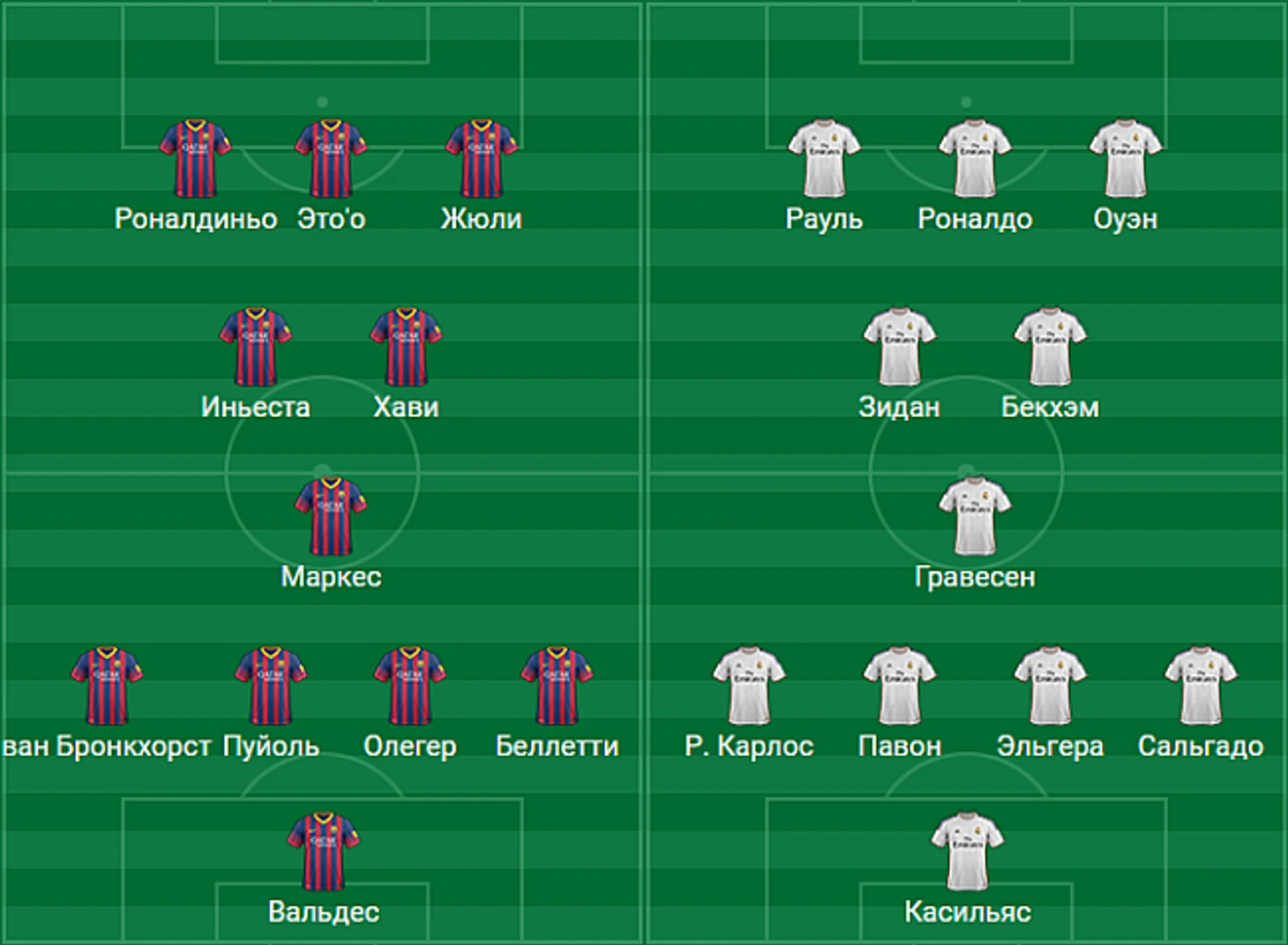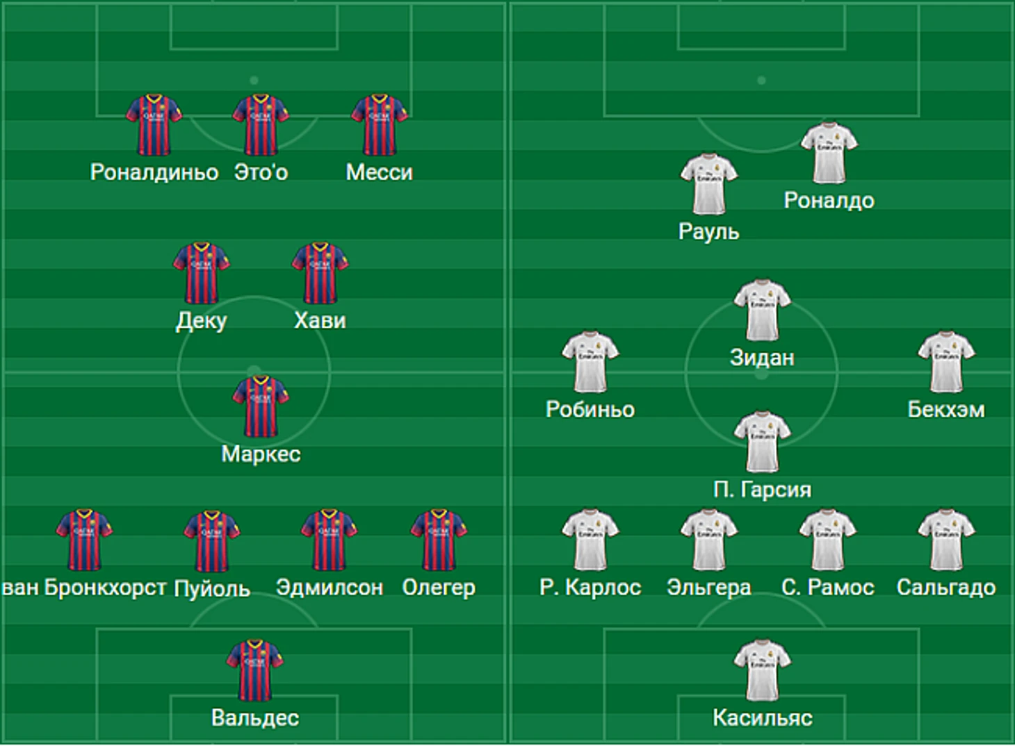 Зидан, 7 (1:0). Роналдо, 20 (2:0). Это’о, 29 (2:1). Рауль, 45 (3:1). Оуэн, 65 (4:1). Роналдиньо, 73 (4:2).