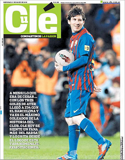 – Лео Месси. МЕССИТЫБОГТЫЛУЧШЕВСЕХФУТБОЛИСТОВНАСВЕТЕ. ПОБИЛРЕКОРДСЕСАРАВОТЭТОДАЦЕЛЫХ234ГОЛА. ЛУЧИКИЛЮБВИТЕБЕСВЕТОЗАРНЫЙ. НЕБЕСНЫЕХЛЯБИРАЗВЕРЗЛИСЬИСОШЕЛСНЕБЕСКНАМВЕЛИКИЙЛЕО. Нет, серьезно, очень круто. Ладно, Сесар. Лионелю даже удалось сместить Роналду с первой строчки трофея Пичичи.