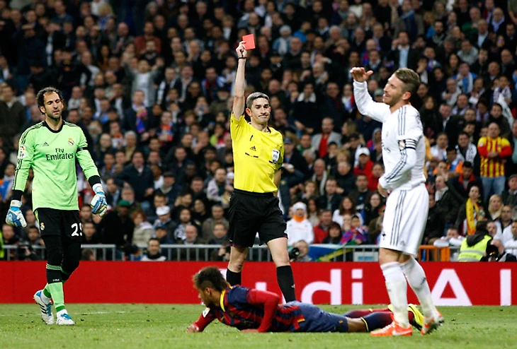 Ни Неймар, ни Бэйл не стали даже приличными помощниками главных героев в прошедшем класико. Без малого 200 миллионов евро суммарно сподобились на минимальное число полезных действий, одно из которых будет обсуждаться едва ли не больше всего матча – это когда Неймар заработал красную карточку для Серхио Рамоса и пенальти для Лео Месси. Из футбольного в том эпизоде гениальный пас Месси, остальное же – в дискуссии о видеоповторах, уровне испанского судейства, и так далее. Честно говоря, я уже просто не помню класико без спорных решений арбитра.