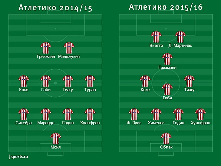 Третий год «Атлетико» меняется по одному и тому же принципу – консервативный подход к формированию защиты и полузащиты, максимально гибкий состав нападения.