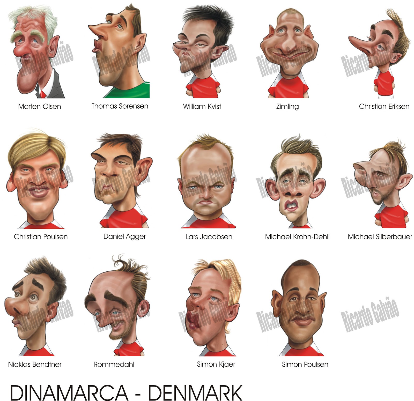 Португальский художник Рикарду Галвао известен в футбольном мире как мастер карикатур. Он написал неплохую коллекцию карикатур на игроков команд-участниц ЧМ-2010.
