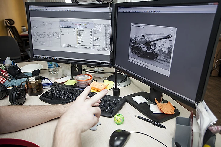 – В игре представлено более 300 моделей танков. Все они достоверные и исторически правильные. У нас работает около 30 историков. Проходит большое количество согласований по каждой модели. И все это нужно красиво и правильно нарисовать и интегрировать в игру. Сейчас Паша все расскажет.