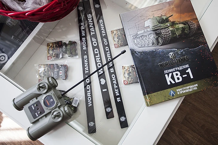 Кофейный столик в кабинете отдела маркетинга завален тематическими ништяками. Книга о характеристиках ленинградских КВ-1. Флешки в виде танков.