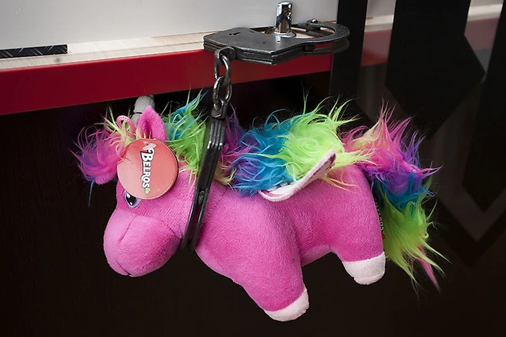 Не по теме БДСМ-ми-ми-ми в виде единорожки, прикованной к столу наручниками.