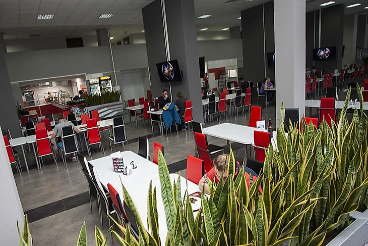 – Один из наших ништяков, которые составляют соцпакет. Есть крупный соцпакет. Идешь в тренажерку, оплачиваешь ее услуги, берешь чек, приносишь сюда – тебе возмещают траты. Зимой на этажах закрываются курилки. Тоже типа ЗОЖ. В столовой же работает мелкий соцпакет. Ты с этой вот карточкой идешь питаться. Она дает 50 процентов скидки. Обед у нас, кстати, с 12:00 до 16:00. Каждый в зависимости от занятости может спуститься в столовую во время этого окна. Такого, чтобы все в одночасье восставали табуном и пошли есть, нету.