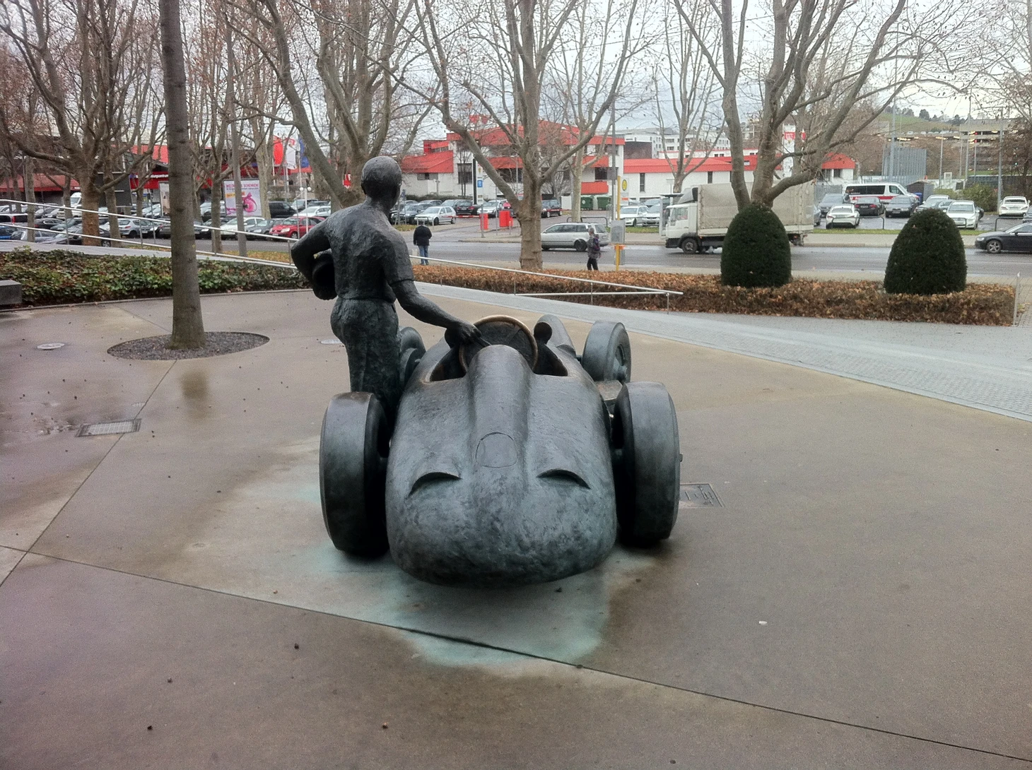 Офис «Штутгарта» на Мерседесштрассе, где мы встречаемся с Константином, не проглядишь. Прямо на него указывает болид великого аргентинского автогонщика Хуана Мануэля Фанхио, памятник которому находится у автозаводского музея. Рауш спускается ко мне после тренировки, которая проходит в десятке метров от «Мерседес Бенц Арены», и массажных процедур.