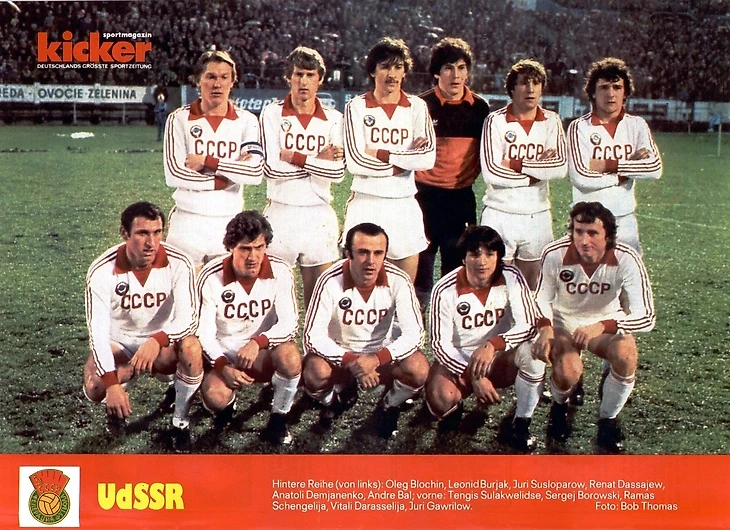 В 1982 г. количество участников финального турнира расширили с 16 до 24, а советские футболисты под руководством Константина Бескова уверенно прошли квалификационную группу с Чехословакией, Уэльсом, Исландией и Турцией, лишь дважды сыграв вничью. В финальном турнире ЧМ-1982 вслед за групповой стадией шла не 1/8 финала, а ещё один групповой турнир, куда выходили по две лучшие команды из шести групп. Итого 12 сборных формировали ещё четыре группы по три команды, с победителями групп выходящими в полуфинал. На первой стадии СССР заняли второе место в соперничестве с Бразилией (1:2 с победным голом Эдера на 89 минуте), Новой Зеландией (3:0) и Шотландией (2:2), опередив последних лишь по разнице забитых/пропущенных мячей. Во второй групповой стадии соперниками советской каманды были серебряные призёры предыдущего чемпионата Европы бельгийцы, уже обыгравшие на турнире Аргентину, и сборная Польши во главе с Гжегожем Лято и Збигневом Бонеком. Бельгию оба представителя стран соцлагеря обыграли, но поляки это сделали увереннее (3:0) и в очном противостоянии наших устраивала только победа. Но лишь нулевая ничья, и итоговый результат сборной (второе место во втором групповом турнире) соответствует стадии 1/4 финала системы на вылет. Основу той команды составляли игроки киевского и тбилисского "Динамо" со спартаковскими вкраплениями в лице Дасаева и Гаврилова.