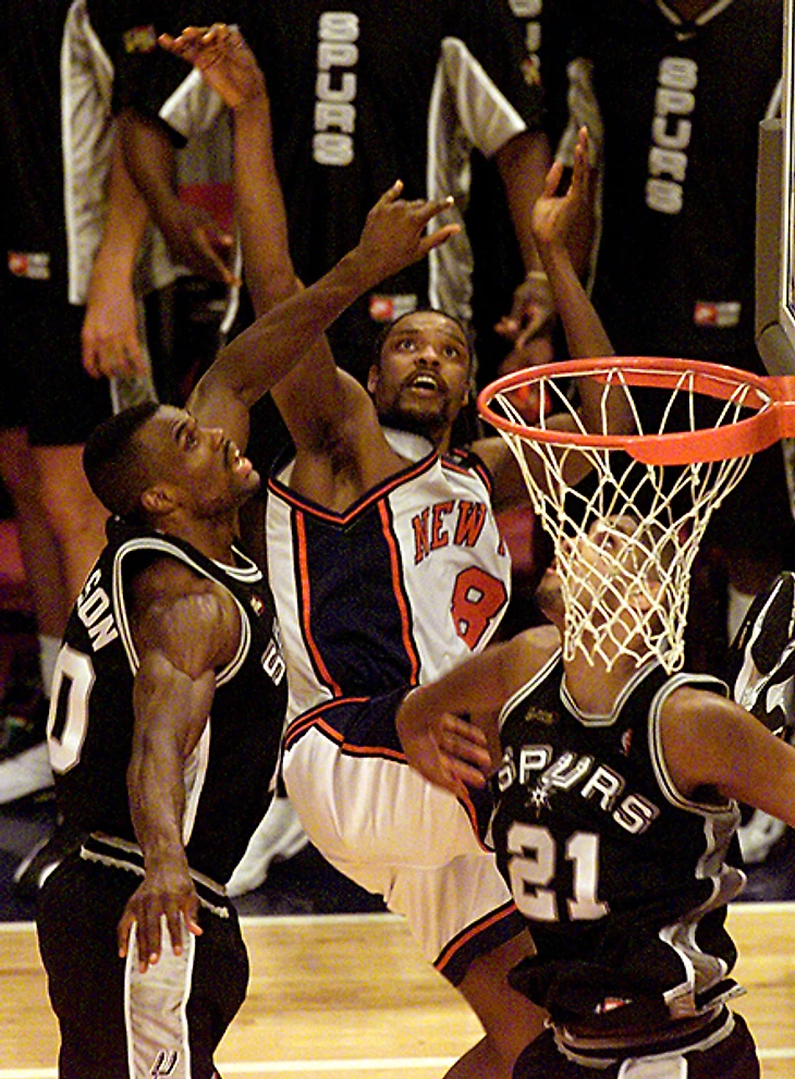Но все эти бессмертные подвиги «Никс» прошли втуне: очевидно было, что без Юинга против могучей передней линии «Сперс» ловить особенно нечего. «Нью-Йорку» удалось выцыганить третий матч серии умелым давлением своего бэккорта. Сприуэлл и К действительно обладали пресловутыми стальными яйцами, но столкновения с яйцами из титанового сплава они не выдержали. В очень упорной пятой игре Эйвери Джонсон коварным броском из угла поставил чемпионскую точку «Сперс» в странном и скомканном сезоне 1998-1999.