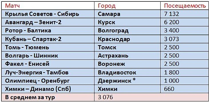 Средняя домашняя посещаемость клубов ФНЛ, после 10 туров: