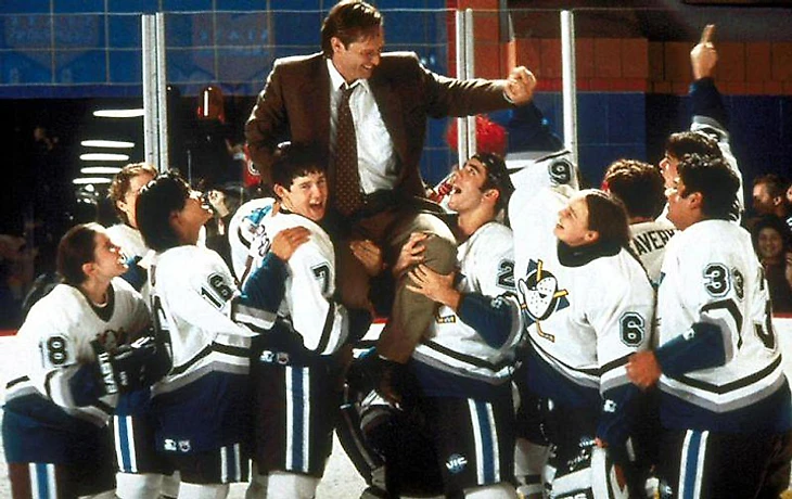 На счастье Брилла, в то время корпорацией командовал Майкл Айзнер (на следующем фото), сам любитель шайбы — еще в Нью-Йорке он похаживал на игры «Рейнджерс», хоккеем занимались оба его сына. С подачи Айзнера студия взялась за этот проект — но без фанатизма. На производство первых «Могучих уток» потратили всего 10 миллионов долларов — например, запущенная через два года комедия «Тупой и еще тупее» стоила в полтора раза больше. В фильме не было ни одной крупной звезды: все молодежь да второй сорт. Брилл и вовсе предлагал на главную роль своего безработного соседа: продюсеры хмыкнули и указали на Эмилио Эстевеса, хоть сколько-то узнаваемого актера — роль в «Утятах» стала самой громкой в его жизни. Успеху и взяться было неоткуда: хоккей в США только-только набирал популярность, до Кубка мира-1996, где американцы победят и сделают рекламу игре на льду, оставалось еще много времени. На историю юных хоккеистов-аутсайдеров студия не ставила, хотя авторский мрак все-таки вычистили: из спортивной драмы вышла сносная добрая комедия.