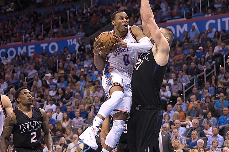 Уэстбрук открыл душу и предстал тем всенепременно присутствующим везде и узурпировавшим владение мячом индивидуалистом в матче с «Финиксом». Это было прекрасно в историческом смысле – впервые со времен Карима трипл-даблу сопутствовали больше 50 очков (Расс набрал 51, сделав 44 попытки). Это именно то, что предвкушали все лето: впервые со времен Айверсона появился безбожный единоличник, которого обожают.