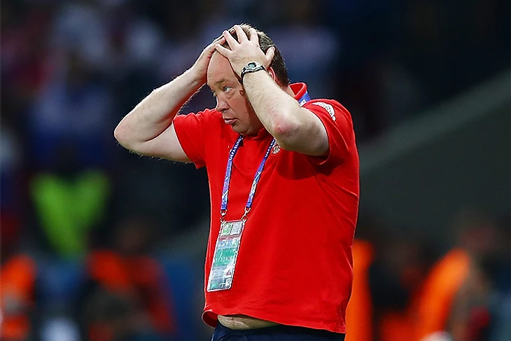 Тревожно стало сразу. Первый раз Гамшик пробил после дикого обреза Шатова в середине поля. Через минуту Головин упустил в своей зоне Куцку и вынужденно сфолил, устроив опасный штрафной. Вскоре Смолов вышел на позицию для удара, но пробил так неточно, что Слуцкий, судя по движению губ, крикнул что-то вроде: «Ну, Федя, опять!» Потом Головин потерял мяч, стремясь выскочить из обороны, но спасло то, что словаки тут же попали в офсайд. Смолов еще раз урвал шанс пробить издали, но опять мимо. Гамшик же отдал магический пас через пол-поля Вайссу, того забыл за спиной Смольников, и словаки повели.