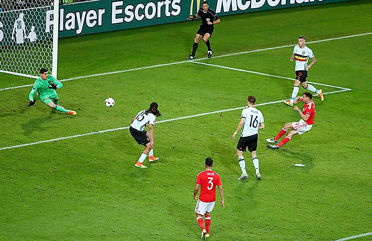 Бельгия заметно растерялась и скатилась на шаблонные навесы Менье с правого фланга, для привычных трюков де Брюйне, Азара и Карраско в окрестностях штрафной Уэльса было слишком удушливо. Один Рэмзи сделал в первом тайме больше обостряющих передач, чем все его бельгийские коллеги. Через десять минут после перерыва Рэмзи стал первым на турнире игроком, отдавшим две голевые передачи в одном матче. Бэйл отдал чудесный пас со своей половины, Рэмзи выскочил из-под Алдервейрелда, а Робсон-Кану откачнулся от Менье. «Теперь это не финт Кройффа, теперь это финт Робсона-Кану», – написал в твиттере Джейми Каррагер. Unbelievable! Unbelievable!!