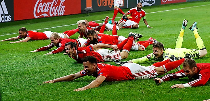 «Unbelievable! Unbelievable!!» – схватившись за лысую голову, хрипел валийский болельщик лет пятидесяти. Еще более невероятной победа Уэльса казалась на тринадцатой минуте. В начале первого тайма Уэльс слишком перестраховывался. В эпическом моменте, когда Хеннесси с друзьями отвели три удара за секунду, кучность у их ворот только помогла, но потом – дала Наингголану пространство в зоне перед штрафной и время подготовки удара, чудовищного по красоте: в это время большинство игроков Уэльса, даже Рэмзи, находилось в своей штрафной, а фактически – в зрительном зале, где показывали второй голевой удар Раджи на Евро.