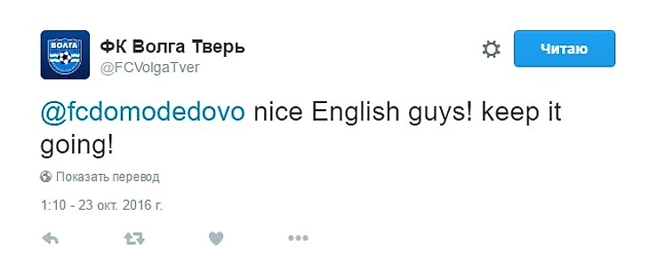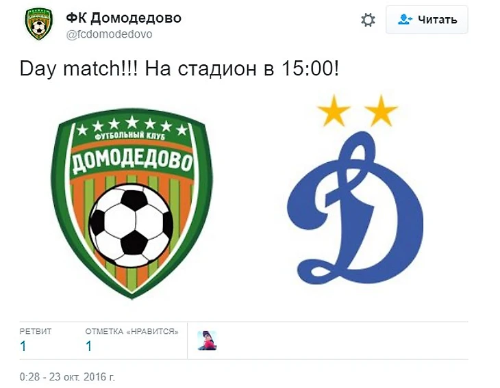 ФК «Домодедово» запостил новость о предстоящем матче, используя английский.