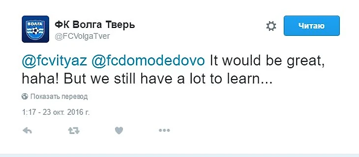 «Это было бы круто. Но нам еще стоит многому научиться», судя по всему, намекая на «Домодедово»