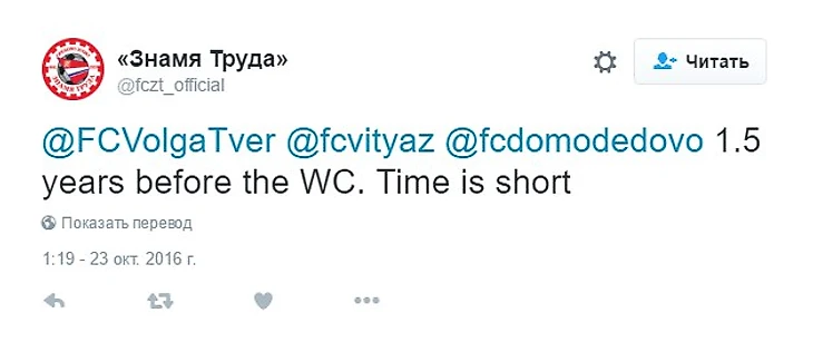Дальше в игру вступил старейший клуб России - «Знамя Труда», намекнув на предстоящий ЧМ в России: