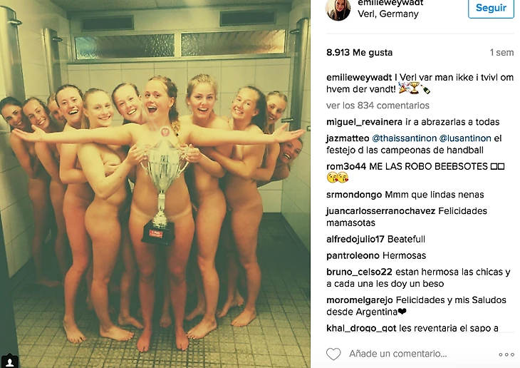 Женский гандбольный клуб из Дании «Твис Хольстебро» обыграл в финале Кубка Кубков «Ладу» и взяли третий европейский трофей за 4 последних сезона. Победу отмечали вот так: