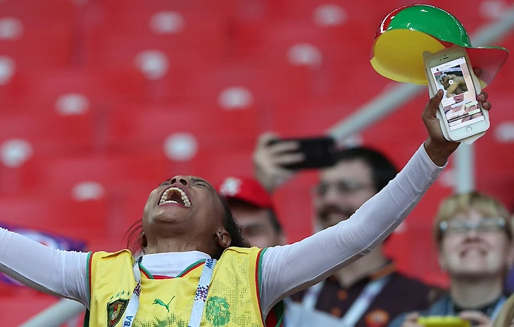 Офигенная баба! Силел в соседнем секторе с болелами Чили, так она их за пояс заткнула! Весь первый тайм что то орала, выла, причитала. Причем на разных языках, на русском в том числе ;-) мы с друзьями решили, что отмену первого гола Чили она нашаманила. В перерыве даже денег закинули на Камерун, так прониклись. И орала она минуты до 60й. И Каменрун реально летел вперёд несколько раз. А потом силы кончились, баба замолчала и Львы слились. Вот такая история ;-)